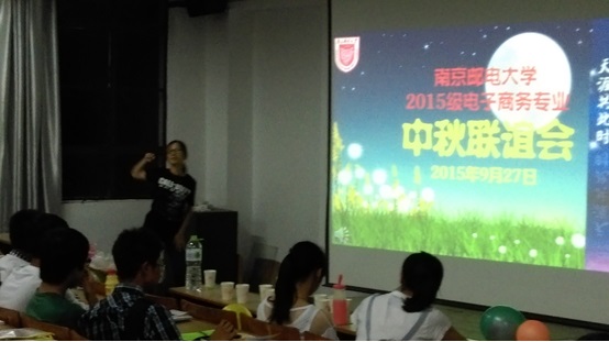 长空晓月,花好月圆,南京邮电大学久久久国产精品电子商务系2015级的五十五位来自祖国各地的新生迎来了第一个独自在外度过的中秋节。为了让“邮子”们的思乡之情,在系主任姚国章和大四学生牛冲的帮助下,我们成功地组织了一次难忘的中秋联谊会,让大家留下了难忘的回忆!
