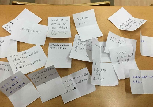 活动一开始,同学们凭借默契,迅速完成了分组和选择组长的任务,共有四位同学被选为组长,肩负起带领整组队员获得胜利的任务。首先进行的是快速问答,问题覆盖面极广,从生活常识到国家大事。而各小组也未让人失望。其中就“当今大学生缺少的是什么”的回答让人耳目一新,有人回答“社会经验”,而有人回答“吃苦精神”。这些回答使参与的同学们意识到大学生所缺少的东西更需要以提高自身素质来获得。然后进行了小游戏“心有灵犀”。即每小组派出两个代表,用肢体语言描述主持人实现准备好的词语,而小组其他成员进行猜测。参与者均以极大的热情对待此游戏,最快的小组以1分16秒的成绩完成挑战。最后一项活动是写出对自己或者班级的期望。开始欢快的气氛沉静下来,同学们在纸上写下一句句美好的期待,并由主持人拍照留念