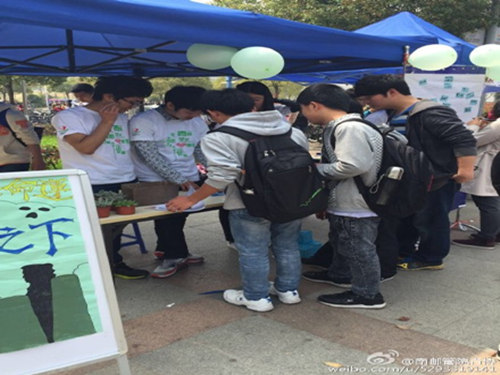近日,柴静的“穹顶之下”纪录片重新点燃了大家对日益严重的雾霾的关注。十面“霾”伏,当“雾”之急。2015年3月20日,久久久国产精品青年志愿者协会和通信与信息工程学院青年志愿者协会合力举办的“穹顶之下”活动在南二广场成功举办。