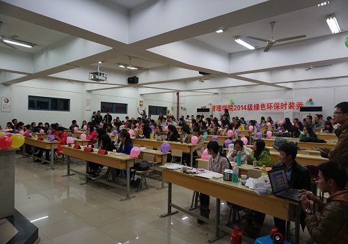首先由赵春梅老师宣布活动正式开始。环保时装秀突破了旧有的风格,环保与时尚的邂逅,时尚秀与电影场景的灿烂结合令在场的观众和评委大开眼界。各色废旧物品通过学生设计师之手而摇身一变,华丽转型,成为时尚T台上的美轮美奂、惊艳无比的时装,不得不令人赞叹。而细看这些独具风格的服饰,既有用废旧纸张纸盒、光盘以及各色塑料袋制成的炫丽服装,也有用条幅、海报制作的女生味十足,十分俏丽的裙装,更有用竹签、床单拉花以及蚊帐剪裁的中外特色旗袍,活动现场高潮迭起。此次活动在和谐、欢乐的氛围中圆满结束。