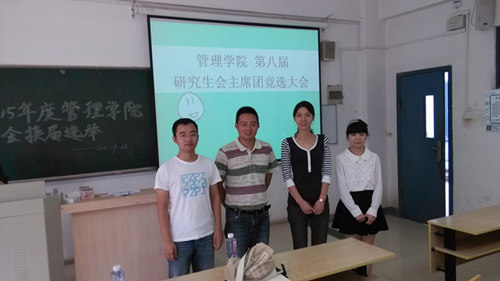 首先,由新任辅导员华奕曦老师讲话,表达了对此次大会的良好祝愿。然后,由第七届研究生会主席严进做了研究生会总结发言,回顾了本届研究生会在一年中的各项工作成果和经验并表达对新一届研究生会的美好期望。接着进入了本次大会的中心环节,六位主席团候选人依次进行十分钟左右的演讲,演讲内容包括自我介绍、对研究生会的认识、对研究生会今后的发展构想、为下学期研究生会策划一个可行的活动等,同时对各部门部长及相关同学提出的问题进行即兴作答。大会当天,所有与会者都行使了选举的权力,本着公平公正公开的原则,经过无记名投票、唱票、念票、计票、第二轮演讲、主席团和老师商议等环节,选举产生了第八届研究生会新的主席团成员,他们分别是尤鹏飞(主席)、成园园(副主席)、陆文杰(副主席)。在会议最后,辅导员肖国丰老师做了总结性发言,表达了对新一届研究生会的殷切希望并传达了研究生部老师对上届研究生会的祝福。至此,此次换届选举大会圆满结束。