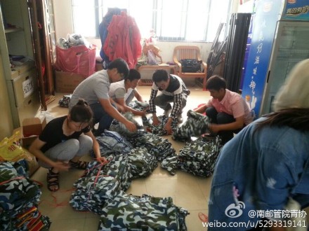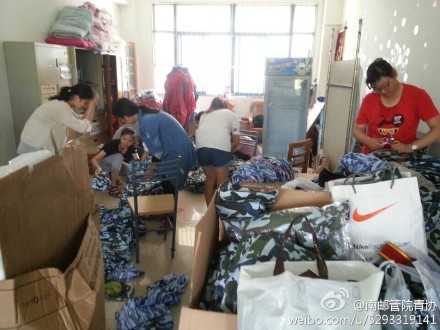 在新生军训时,青年志愿者协会收新生军训服活动就已经如火如荼地进行着。新加入的小部员们通过扫楼宣传等方式预约了不少军训服。在新生全部军训、合唱完成之后,各位小部员就上门把已经预约好的军训服回收起来。今天早上,在社会服务部部长的带领下,各位负责人在宿舍楼下集合,一起将本部收到的衣服运送到办公室。在办公室里,小部员们又积极的留下来折叠、清点服装。将一套套衣服整齐的叠好,用绳子捆扎起来。在各位同学的努力下,青年志愿者协会总共收到440套军训服,数目可观。收集来的军训服一半捐给需要的人们,另一半卖掉所得的资金用作协会日常公益活动的经费。我们将带着大家的爱心一起起航,到达需要的人手中!