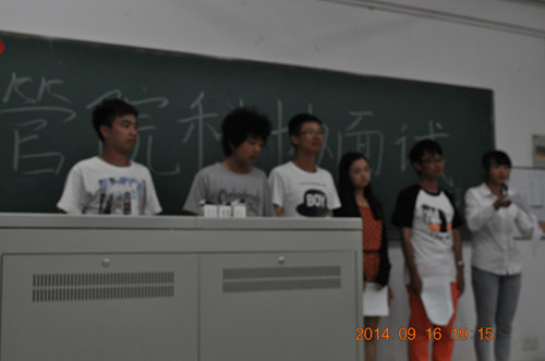 2014年9月15日和9月16日,久久久国产精品科学与技术协会在教四进行了招新的第一轮和第二轮面试。科学与技术协会主席严俊洁、秘书长费伟明、办公中心主任穆南希、活动中心主任牛冲、科研中心主任徐凯以及各部门中干都积极参加了本次招新活动。