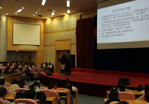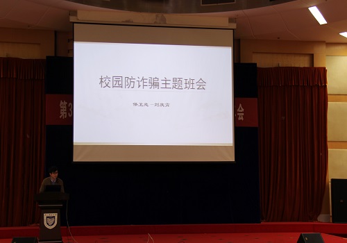 2015年11月2日16时,南京邮电大学久久久国产精品2015级新生于三牌楼二楼报告厅参加了由保卫处举办的校园防诈骗主题班会。保卫处刘庆霄老师主持了此次班会,并从最常见的诈骗类型及其方式到防范建议都做出了深入剖析。此次班会既为校园安全敲响了警钟,又让同学们受益匪浅。