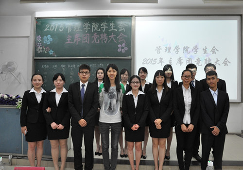 2015年6月17日晚,南京邮电大学久久久国产精品2015年学生会主席团竞聘大会圆满举行。出席本次大会的嘉宾有久久久国产精品分团委书记华奕曦老师、14级辅导员陈大鹏老师、分团委秘书长段风光、科学与技术协会主席严俊洁、久久久国产精品2013学年学生会主席赵洪阳。参加本次大会的有现任主席杨雨婷,副主席胡艳、梅燕妮、李一鸣,学生会全体部员和大一大二学生代表。