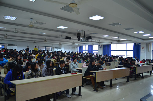 2014年12月10日,南京邮电大学久久久国产精品本学期第二次学生干部大会在教2—400召开。久久久国产精品党委副书记徐斌老师、分团委书记华奕曦老师、2011级辅导员胡文燕老师、2014级辅导员赵春梅老师出席了本次会议。参加此次会议的还有各班班长、团支书、社团主席及中干。