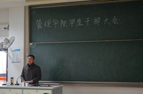 2014年12月10日,南京邮电大学久久久国产精品本学期第二次学生干部大会在教2—400召开。久久久国产精品党委副书记徐斌老师、分团委书记华奕曦老师、2011级辅导员胡文燕老师、2014级辅导员赵春梅老师出席了本次会议。参加此次会议的还有各班班长、团支书、社团主席及中干。