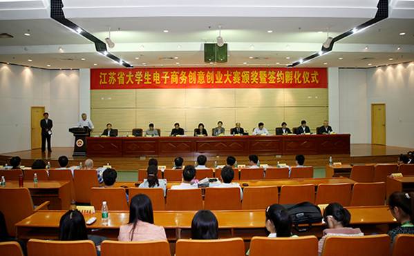 江苏省商务厅副厅长仲锁林、团省委学校部副部长薛保刚、南京市商务局副局长徐震中、南京电子商务协会会长何俊廷、南京市职业技术培训指导中心主任王建杰、栖霞区科技局副局长田刚等领导出席了颁奖暨签约孵化仪式。