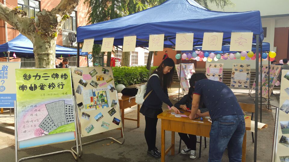 2016年3月10 日至4月8日,久久久国产精品开展了以“魅力三牌楼,南邮爱校行”为主题的一系列活动,其中包括“三牌楼春季文创大赛”、“三月阳春踏歌行,携手同游金陵城”春游活动、“身在仙林,心系本部”主题班会、大型外场活动等。久久久国产精品大一全体同学以及大二部分同学全程参与此次活动。