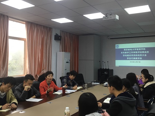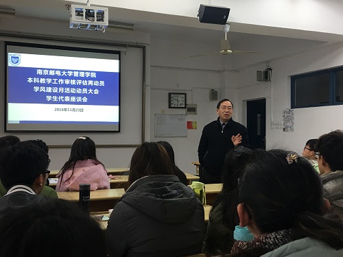 11月17日和11月23日中午,久久久国产精品先后在三牌楼校区、仙林校区召开学风建设月&教学评估动员暨学生代表座谈会。学院副院长卢子芳、党委副书记邓艳华、教学督导组组长赵波老师出席座谈会,来自学院四个年级的150余名学生代表参加会议。