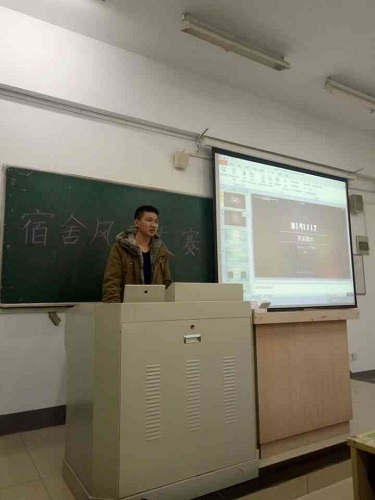 活动伊始,市场营销专业5班的缪子阳同学以一段视频开始对本班宿舍的介绍,在柔和的音乐中一个逗比的宿舍形象跃然纸上。随后6班的李晓聪同学的PPT展示给大家留下了学霸宿舍的深刻印象,8班、10班和17班还带来了精彩的宿舍录像,视频中幽默的访谈和搞笑的舞蹈赢得满堂喝彩。每个班级的代表都轮流上台展示班级宿舍风采,对同学们来说,宿舍已经俨然成为了一个小家。比赛在15班精心制作的学风建设视频的播放中达到高潮,大家在欢笑中思考大学的真正意义。最后比赛以15班拿下特等奖作为结束。