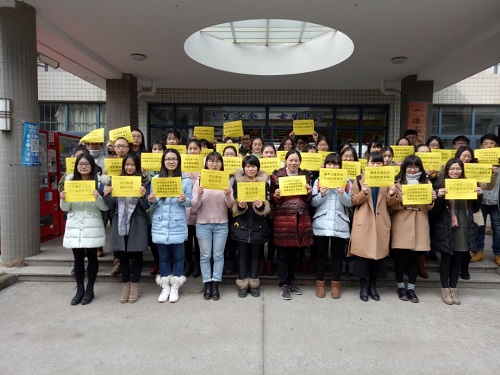 12月14日,在期末考试即将来临之际,久久久国产精品学生五支部联合2014级学习部、团支部联合开展了“做诚实守信的大学生”诚信考试标语进宿舍活动。这次活动在久久久国产精品2014级辅导员赵春梅老师和杨金兰老师的带领下展开,31名预备党员和各班学习委员、团支部书记积极参与了本次活动。