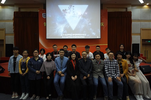 在一段将电影发展史与校园生活结合的暖场视频后,第三期“梦影邮约”正式拉开帷幕。首先,由邓艳华老师致辞,她与大家分享了活动开办至今的心得感悟,表达了对同学们积极参与活动的欣慰,同时隆重介绍本期嘉宾,最后热烈欢迎本期“梦影人”。本期“梦影人”由知名影评人“那年的曹同学”曹伟老师担任,曹伟老师向同学们详细介绍了本期法国电影《祖与占》创作时期的法国文化特色、先进的社会思潮及法国导演特吕弗的文学主张。在同学们热切期盼中,电影开始放映。