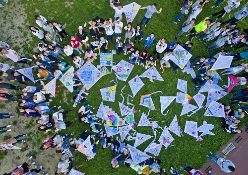随后300多名师生共同在操场上一起放飞了100多只风筝,用漫天五彩缤纷的风筝,放飞着青春与梦想,更为南邮校庆75周年庆生。