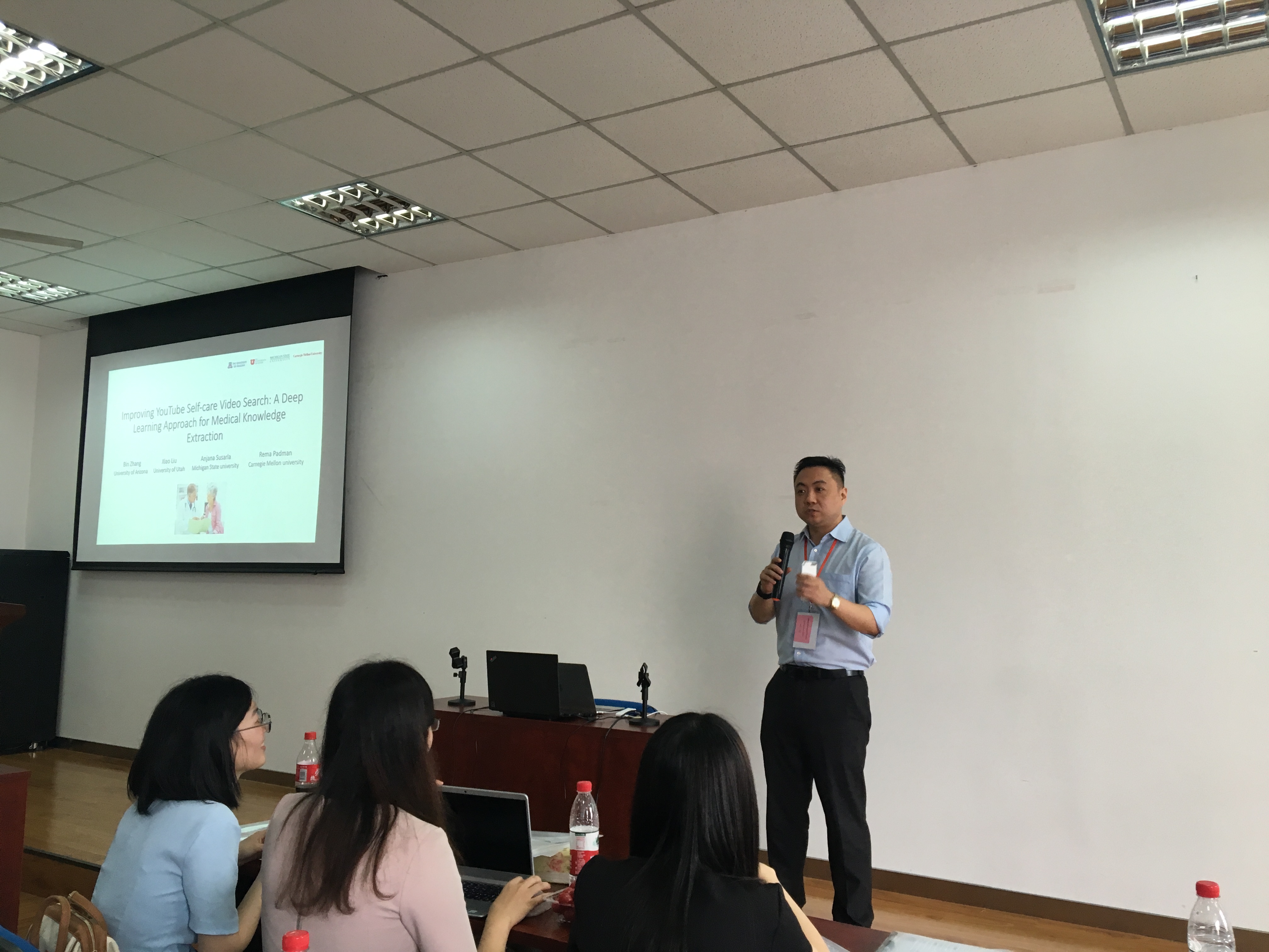 亚利桑那大学管理信息系统系助理教授、卡耐基梅隆大学的访问研究员张斌博士作了题为“Improving YouTube Self-care Video Search:A Deep Learning Approaching for Medical Knowledge Extraction”的报告,在其研究中, 其通过开发一个研究框架, 并利用递归神经网络这样一个领先的深度学习架构, 从用户生成的内容视频共享的社会媒体网站提取医学知识。该研究首次提出用语义关系抽取的方法提高视频搜索质量,张斌博士提出的阵向量RNN模型是在医学关系抽取健康信息学中首次引入的深度学习法,该模型要远远优于传统的监督学习模式。