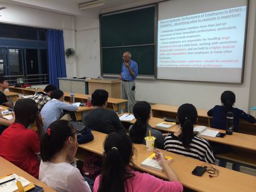 为了大家更好地了解美国大学生的学习与就业情况,Qadir Mohiuddin教授又针对美国企业的绩效考评制度为大家讲解。通过对一系列具体案例的展示与阐述,Qadir Mohiuddin教授将一个立体的美国社会展现给了大家。同学们热情高涨,纷纷表达自己的看法并结合自身情况向Qadir Mohiuddin教授提问。