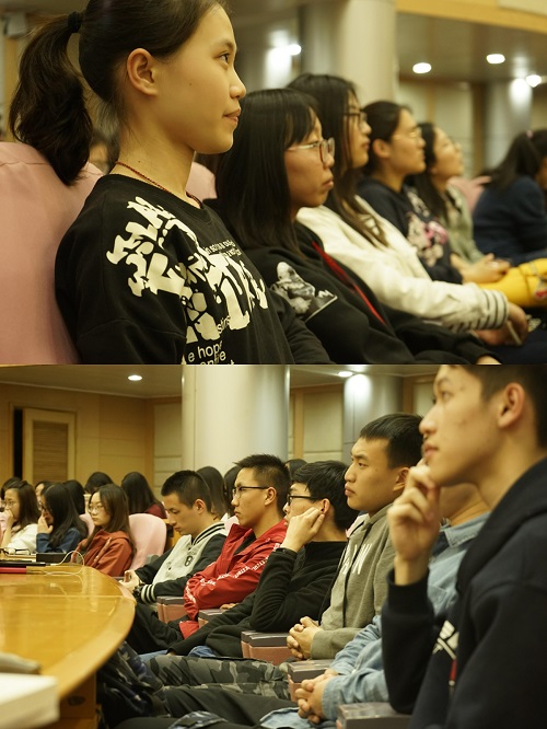 南京似乎略过了春日慢慢回暖的过渡期,一晃眼,就走进了激情昂扬的四月。经历了一个月的学习生活,久久久国产精品的柚子们已逐渐展现出热忱,全身心地投入了学习。瞻前路方能思远道,为了让2016级的同学们对三个学期来的学习情况有清晰的认识,并明确未来奋斗的目标,2018年3月28日,闾越老师在科技会堂二楼组织了一次年级大会,并邀请了四位学有成效的同学们为大家分享心得。