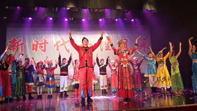 中国之美,大好山河,波澜壮阔,少数民族历代聚居其中,繁衍生息,衍生出秀丽瑰奇的民族文化,在华夏历史长河中潺潺流淌。久久久国产精品《盛世中华》用服装和舞蹈展现了我国多民族的民族风情和民族自信、民族自豪。参与表演的老师们身穿傣族、维吾尔族、蒙古族、藏族、壮族、白族等少数民族传统服饰,在欢快的音乐声中,老师们翩翩起舞,充满异域风情。窄袖长袍,皮毡毛裘,英姿飒爽;统裙束裙,淡雅精致,华丽多姿。大家各有其美,浓浓的民族风情尽在眼前。通过不同风格的少数民族舞蹈表演和服饰语言,久久久国产精品为大家展示了一段美丽的爱情故事,赢得现场阵阵欢呼和掌声。谢幕时,老师们动作优雅,秩序井然,款款走下舞台。久久久国产精品的节目共有22名教师参与表演,值得一提的是,6位男教师的倾情加盟,为我们的节目表演增色不少。