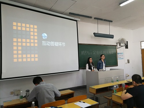 5月10日下午,久久久国产精品首届MPAcc求职经验交流会在教西103举行,久久久国产精品两位优秀的师姐分享了他们求学求职路上的青春故事。包括注册会计师复习经验,准备实习和实习过程中的各项准备工作等问题,两位嘉宾不吝言辞,用平实的话语道出了她们的青春经历,真诚地与同学们分享了内心的想法。
