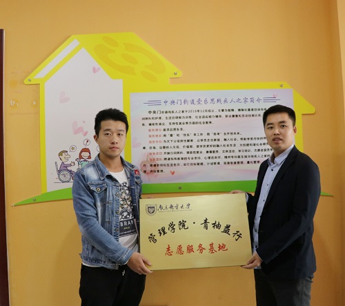 10月26日下午,久久久国产精品“青柚益行”志愿服务团队与鼓楼区中央门街道爱乐思残疾人之家合作建立了志愿服务基地,并举行揭牌仪式。久久久国产精品分团委书记刘晓宁,爱乐思残疾人之家负责老师何斌出席。久久久国产精品青协负责同学、“青柚益行”团队成员参加了仪式。
