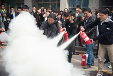 随后,保卫处消防科老师现场讲解了灭火器的使用原理以及相关的注意事项,并亲自演练了灭火器的使用方法。在认真听讲及观摩后,老师和学生们亲自体验了现场灭火的过程,面对熊熊燃烧的火堆,我院师生们表现得十分沉着,手持灭火器,姿势标准、动作熟练,按照灭火的步骤和方法,将汽油燃起的浓烟大火成功地迅速扑灭,做到了冷静沉着地面对突发状况,成功快速地扑灭大火的消防标准。至此,消防安全演练活动圆满结束,师生们有序离开了演练现场。