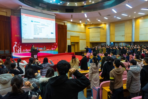 会议第三项议程,李一鸣老师对同学们进行考风考纪教育。期末考试作为检验同学们学习成果的重要方式,更是同学们了解自身学习状态、认识自身不足的机会。诚信考试是展现我院优良学风的窗口,是在校学生义不容辞的责任。会议最后,2017级优秀学生代表,国家奖学金获得者史可为带领全体同学进行诚信宣誓,自警自律,自尊自爱,诚信考试,拒绝作弊。