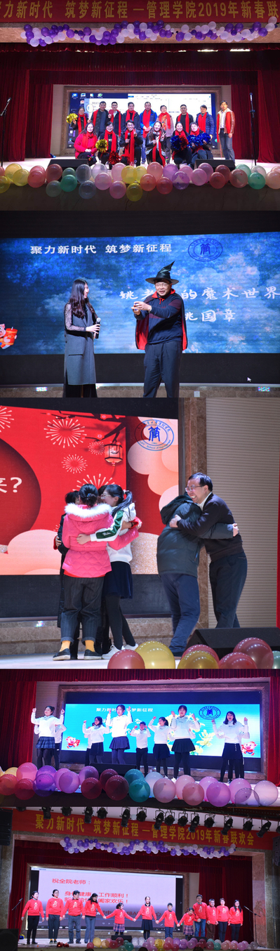 随后,久久久国产精品2019年迎新春教职工联欢会正式开始,晚会由2018级辅导员老师丁仪、华阳主持,MBA中心孙建敏老师担任游戏环节主持人。电子商务系老师们表演的节奏明快的开场舞《热那亚一日游》拉开了联欢会的帷幕,梦幻的镁光灯不断聚焦,迅速将台下老师们拉进了欢快气氛中。这充满异域风情,让我们足不出户也能领略异国他乡的风情万种。接着各个工会小组一一展现“十八般武艺”,合唱、魔术、拳法各类别出心裁的节目均一一亮相,创意十足。最后,晚会在青年博士工作站合唱的一首《明天会更好》中缓缓落下帷幕。本次联欢会还穿插了有趣的小游戏,院领导、老师们都积极地参与到“爱的传递”、“爱的抱抱”游戏中。整场联欢会精彩不断,趣味洋溢,掌声不停,展现了老师们教学能力之外的创造力、多才多艺。