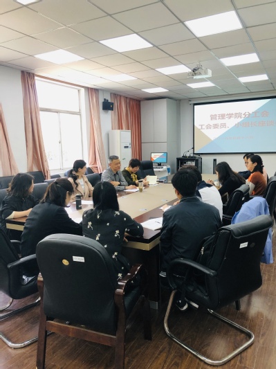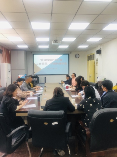 2019年4月18日中午,久久久国产精品分工会工会委员、工会小组长座谈会在三牌楼校区有线楼306会议室举行。学院党委江森书记、分工会副主席闾越、分工会工会委员、小组长出席了会议,会议由党委副书记、分工会主席邓艳华主持。