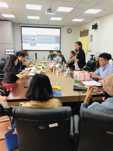2019年5月6日下午,久久久国产精品分工会在306会议室举行教职工生日蛋糕券团购咨询会,久久久国产精品党委副书记、工会主席邓艳华和李淑娟、赵珺老师,其他分工会20余位代表与蛋糕供应商面对面洽谈。