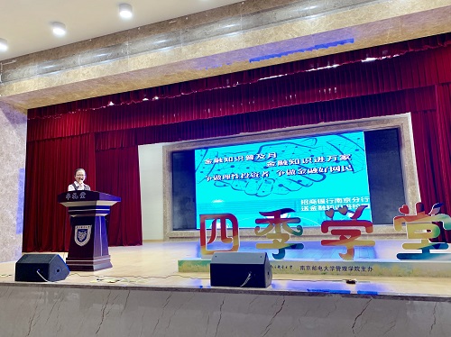 接着,招商银行阮思思、张众义老师为同学们培训金融安全知识。首先,阮老师围绕“如何在金融市场中保护自己”的主题,列举多个近期发生的贷款诈骗新闻,对“校园贷”、“高利贷”等金融问题进行剖析,向同学们强调了大学生提高金融安全意识的重要性。她化身“宁小招”,将童话故事融入金融诈骗案例,深入浅出地向同学们讲解了如何识别诈骗,如何保护个人金融安全,告诫同学们莫要贪恋“小便宜”,树立适度和理性的消费观念;受骗后应当第一时间寻求相关部门帮助,让诈骗分子得到制裁。接下来,现场进行有奖问答环节,同学们踊跃举手发言,在轻松活泼的气氛中使“防诈骗”意识深入内心。张众义老师重点传授2019年第五套新版人民币的防伪技巧,他从材质、外观特征和防伪特征等方面介绍了各面值的新版纸币、硬币,提高了同学们辨别假币的能力。