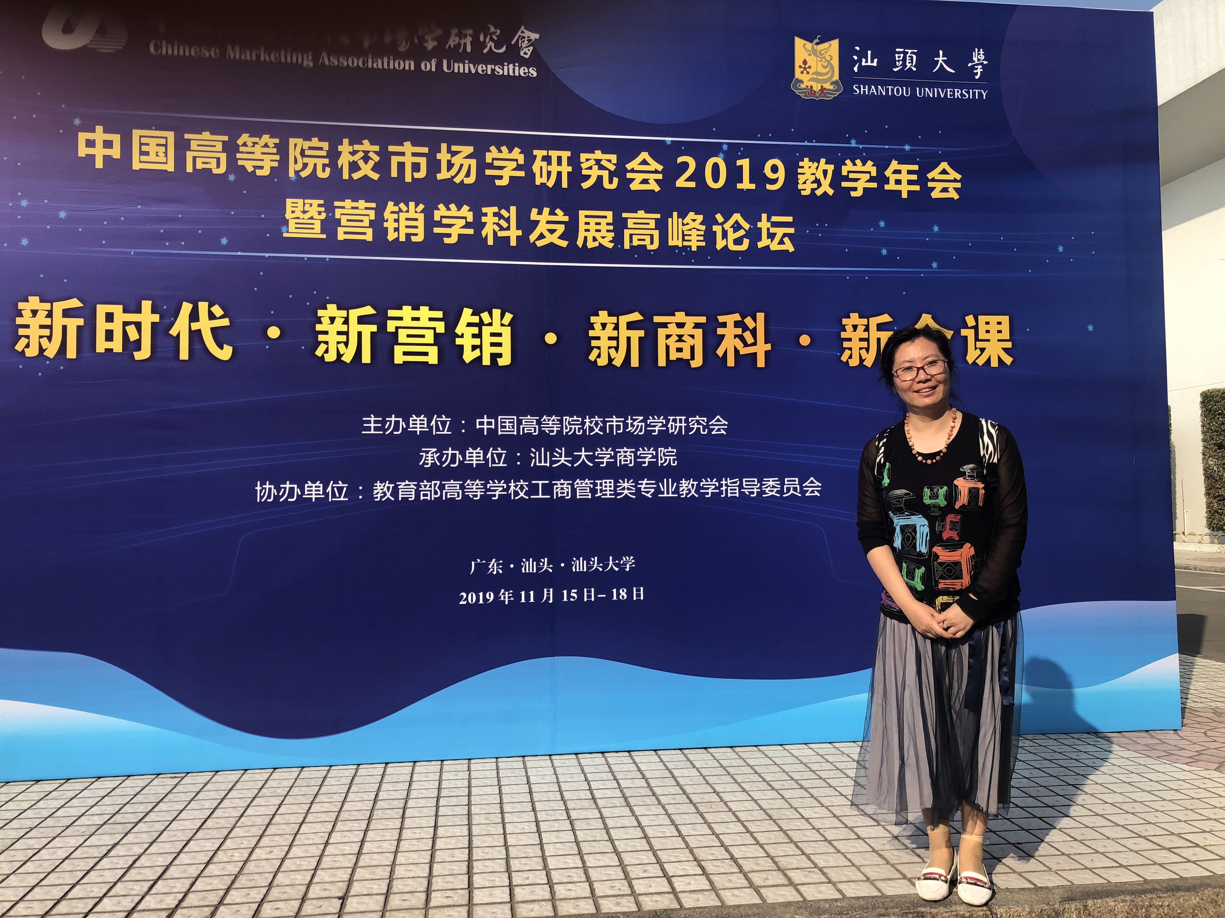 中国高等院校市场学研究会2019教学年会暨营销学科发展论坛于2019年11月15日-18日在汕头大学举办,本届年会得到了教育部高校工商管理类专业教学指导委员会大力支持。本届年会的主题为“数字时代的市场营销专业主干课程建设”。市场营销系系主任陈立梅副教授参会。