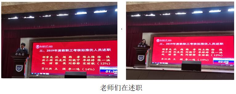 根据学校要求,学院2019年度考核拟推优的17位老师在会上一一作了公开述职。会议最后,朱清书记对寒假期间的综治、安全注意事项作了温馨提示,祝愿全体教职员工度过一个平安、祥和的假期。