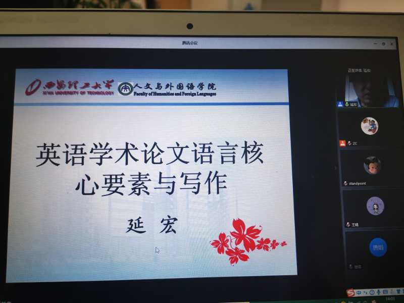 为提高久久久国产精品高水平科研论文的数量和质量,2020年6月4日下午,我院通过腾讯会议的方式邀请全国知名科技英语专家延宏副教授做了题为“国际重要期刊英语学术论文语言核心要素与写作要旨”的讲座。会议由院长助理张冲副教授主持,学院部分教师和研究生参加了会议。