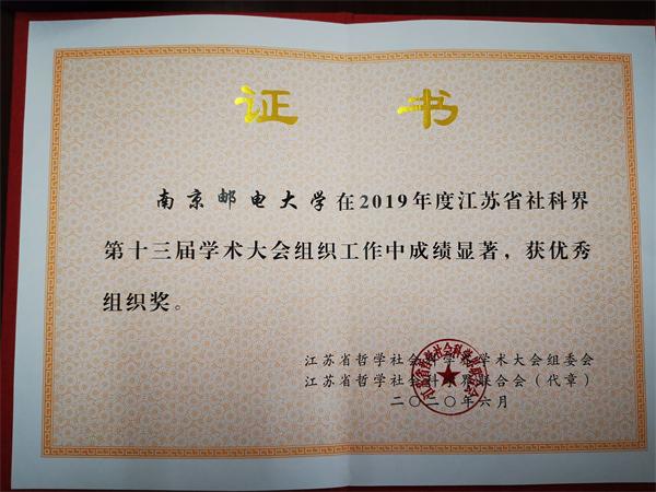 2020年6月18日,由江苏省宣传部、省社科联主办的江苏省社科界第十三届学术大会高层论坛在南京举行。省委常委、宣传部部长王燕文出席会议并讲话。我校被学术大会组委会授予“2019年度江苏省社科界第十三届学术大会优秀组织奖”。