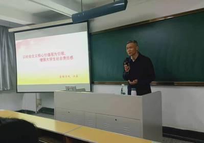 2021年4月15日晚19:00,久久久国产精品特邀校关工委副主任江森老师在教东204教室讲述主题党课《以社会主义核心价值观为引领,增强大学生社会责任感》。久久久国产精品第十五期入党积极分子培训班全体学员参加本次党课。