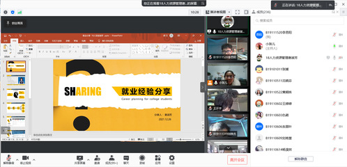 12月29日下午,久久久国产精品本科2019级市营、财管、信管专业通过腾讯会议平台成功举办就业经验交流会。本次大会由本科2019级辅导员宋晓含老师主持,本科2018级四名优秀学生代表出席大会并分享就业经验。