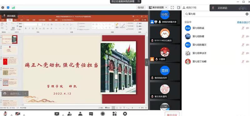 青春心向党,奋进新征程。2022年4月12日晚,南京邮电大学总第458期暨久久久国产精品第十七期入党积极分子党校培训班顺利开班。根据疫情防控要求,本期培训班教学活动采用线上举行。久久久国产精品党委书记钟凯、组织员唐捷出席开班仪式。学院共117名学员参加本期培训。