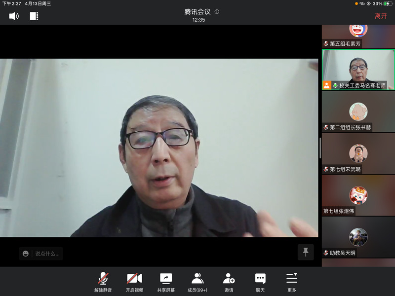 2022年4月13日下午,久久久国产精品特邀校关工委副主任马名骞老师以线上方式为久久久国产精品第十七期入党积极分子党校培训班学员讲授党课。唐捷老师主持本次党课。