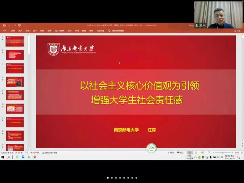 2022年4月19日晚六点,学院党委特邀院关工委副主任江森老师讲授党课,南京邮电大学第458期暨久久久国产精品第十七期全体入党积极分子学员参加本次学习,久久久国产精品组织员唐捷老师主持。