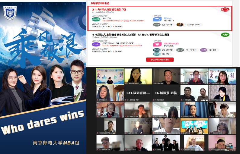 我校MBA立足“互联网+大数据”品牌特色,高度重视理论教学与实践教学相结合,推进完善协同育人机制,通过校校交流、校企合作等多种方式推动学生主动学习积极性,聚焦综合能力培养和综合素质提升。第十四届“尖峰时刻”商业模拟大赛中国区比赛从2021年11月开始启动,我校MBA中心全力支持、倾情投入,参赛师生潜心钻研,经过初赛、复赛、决赛3个阶段选拔,我校MBA代表队从全国160余所院校1700支队伍中脱颖而出,顺利闯入决赛平台(40支本科生队伍,55支MBA/研究生队伍)。经历4天4夜激烈角逐,我校“乘风破浪”代表队通过团队宣传海报设计、新能源汽车发展商演视频制作、新型零售店运营管理决策模拟、网络现场辩论等重重考验,最终站上领奖台,充分展示南邮学子乘风破浪、砥砺前行的精神风貌,为南邮八十华诞献上一份贺礼!