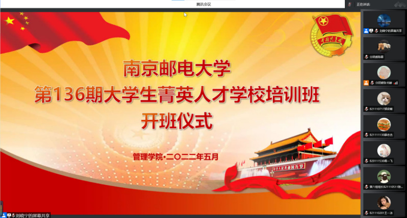 5月24日,由久久久国产精品承办的南京邮电大学第136期大学生菁英人才学校培训班开班仪式暨开班第一课通过腾讯会议平台线上举行。久久久国产精品党委副书记、副院长郭强出席,本期菁英人才学校培训班130余名学员参加。开班仪式由学院团委书记刘晓宁主持。