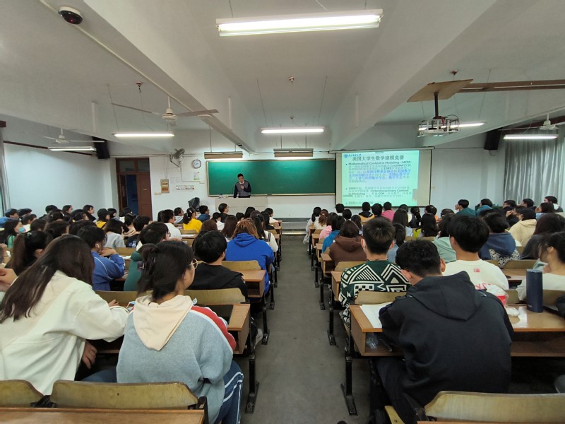 闫老师着重强调了数模竞赛在思考方法和思维方式上与其它竞赛的区别,他鼓励同学们在竞赛中掌握快速学习、随机应变的能力。闫老师还从前期准备、组队分工、模型介绍、数学统计方法、计算机相关技能等方面详细讲解了参赛要点,此外,闫老师为同学们推荐了一些数学建模相关的书籍。最后,闫老师指出,“一次参赛,终生受益”,数学建模竞赛考验的不只是学习能力,更重要的是团队协作意识、不怕困难、克服困难的决心,同学们要百折不挠,勇于创新,才能有所收获。
