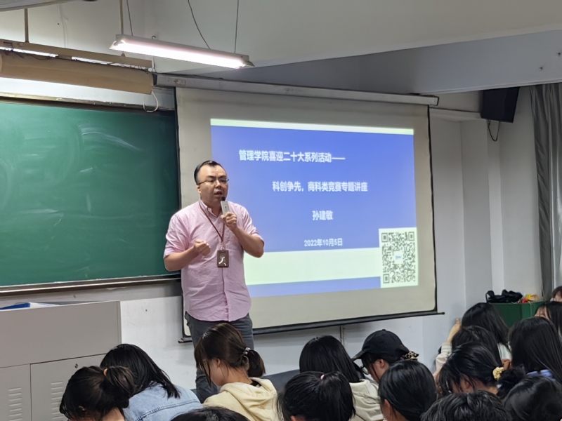 本科2021级党支部开展了“喜迎二十大,科创争先进”的科创竞赛系列讲座。本次科创竞赛系列讲座特邀我院连续多年指导电子商务及市场调查竞赛屡获国奖的孙建敏老师和理学院硕士生导师、知名数模竞赛指导专家闫庆伦副教授分别给同学们带来了两场学术竞赛“大餐”,两位老师结合不同竞赛的各自特点,从竞赛的内容和形式、历年竞赛题型、参赛技巧及我校集训情况等方面进行了详细的讲解。