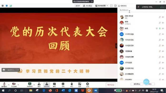 11月2日下午,学院党委书记钟凯老师以线上方式为第十八期入党积极分子党校培训班全体学员讲授党的二十大精神专题党课。唐捷老师主持本次党课。