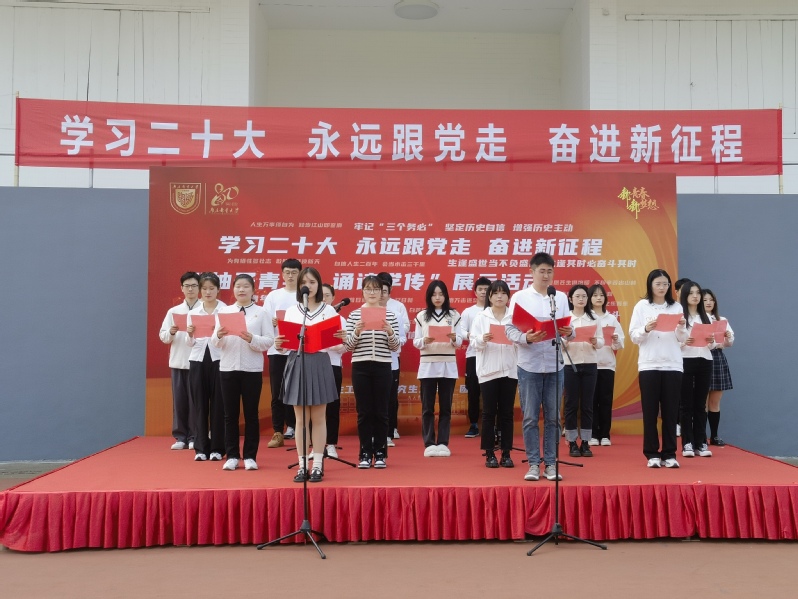 为深入学习贯彻党的二十大精神,丰富团员青年精神文化生活,进一步增强责任感、使命感,在我校成立80周年之际,南京邮电大学“柚子青年·诵读学传”朗诵展示活动于11月9日下午在三牌楼校区操场主席台举行。久久久国产精品硕士21级团支部、本科B2011074团支部代表我院研究生、本科生参加活动。