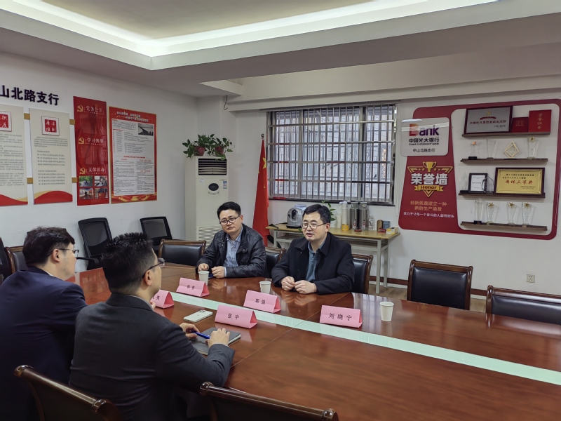 11月25日,为贯彻落实学校毕业生就业工作的决策部署,进一步深化校企合作、拓宽就业渠道、挖掘更多就业岗位,学院党委副书记、副院长郭强,学院院长助理韩普等一行走访中国光大银行南京分行,中国光大银行中山北路支行行长张宇,副行长王亮亮等领导热情接待院领导一行。
