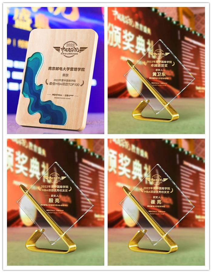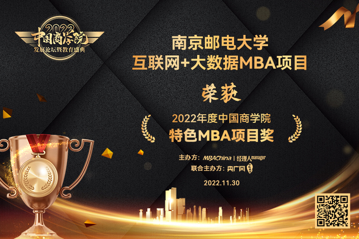 南京邮电大学MBA凭借学校深厚底蕴,秉承“信达天下自强不息”的南邮精神,践行“立信、致远、求实、创新”的办学理念,致力于培养理论与实务并重、适应全球化和信息化要求、具有复合知识结构和创新实践能力的工商企业人才,营造优良创新生态,持续推进改革创新,为进一步提高MBA培养质量而不懈努力。本次获得的各类奖项是对我校MBA办学成果的一次检验,体现了社会各界对我校MBA项目的一致肯定,这是学校及学院领导、全体MBA师生共同努力的结果。同时,也激励我校MBA项目再接再厉,发挥优势,继续为中国商业发展作出贡献,培养更多具有行业前瞻性、视野开放性、创新创业能力和担当精神的商业人才。