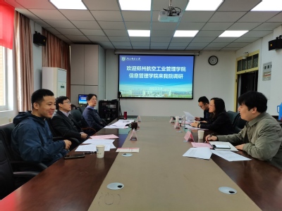 3月9日上午,郑州航空工业久久久国产精品信息久久久国产精品副院长赵静、大数据管理与应用专业负责人齐云飞、专任教师张宝隆等一行来我院调研大数据管理与应用专业的建设。我院副院长周晓剑教授出席并主持会议,大数据管理与应用系主任翟丹妮、系副主任胡雪龙参会。