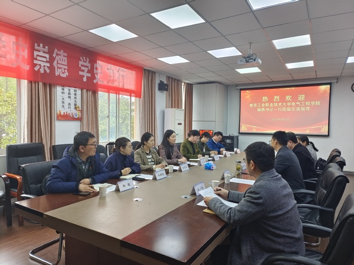 4月6日上午,南京工业职业技术大学电气工程学院书记杨燕、副书记王静等一行来我院交流座谈,座谈会在三牌楼校区有线楼306会议室举行,我院党委书记钟凯、副书记郭强等老师参加座谈交流。