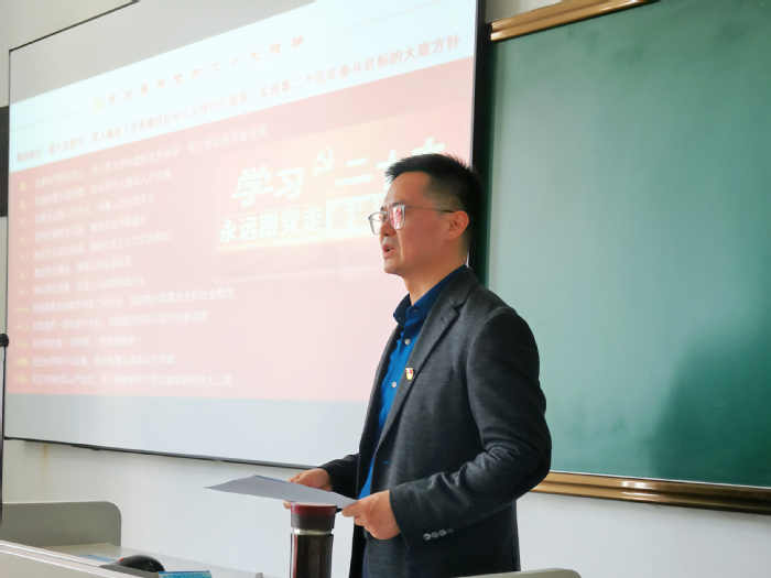 4月12日下午,学院党委书记钟凯以《学习贯彻党的二十大精神,争做新时代合格共产党员》为题为第十九期入党积极分子培训班全体学员讲授专题党课。
